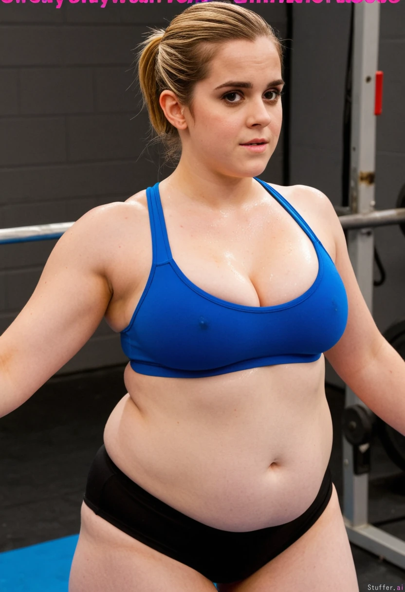 (sweaty) Glow Emma Watson Blond Tanned Gym Aerobics Large boobs Thick Chubby Overweight