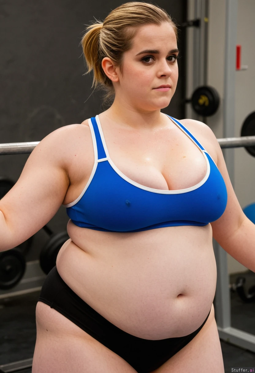 (sweaty) Glow Emma Watson Blond Tanned Gym Aerobics Large boobs Thick Chubby Overweight Bbw