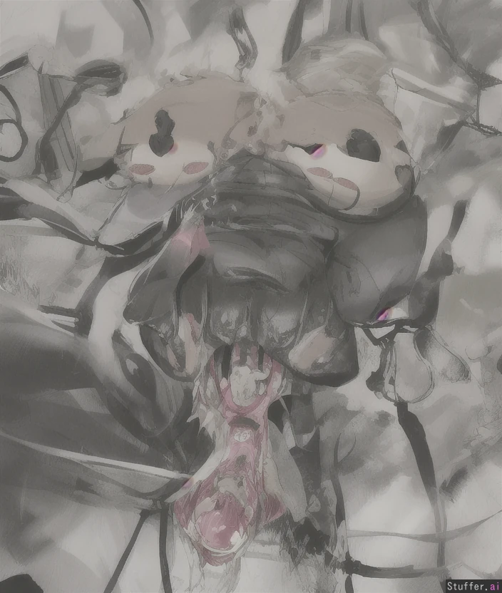 Chubby girl handstand upside down. Full body. pink latex gimp full hood covering whole head. Hood covers eyes and nose. Tits instead of eyes Mask around Mouth is painted like realistic vagina mouthhole. Mouth looks like wet cunt dripping with cum. Whole face dripping in cum