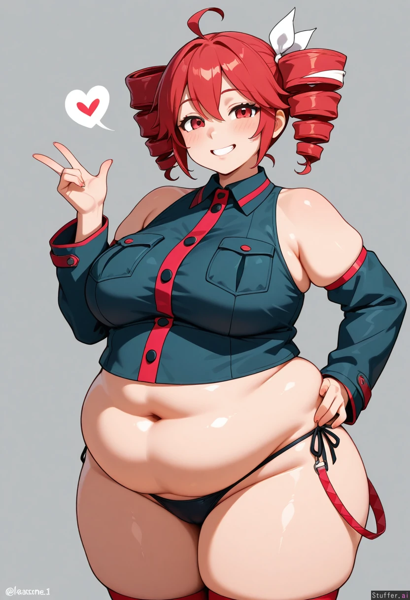 1girl, best_quality, anime, kasane_teto, overweight_female, fat_belly, wide_hips, smile, grin, flirting