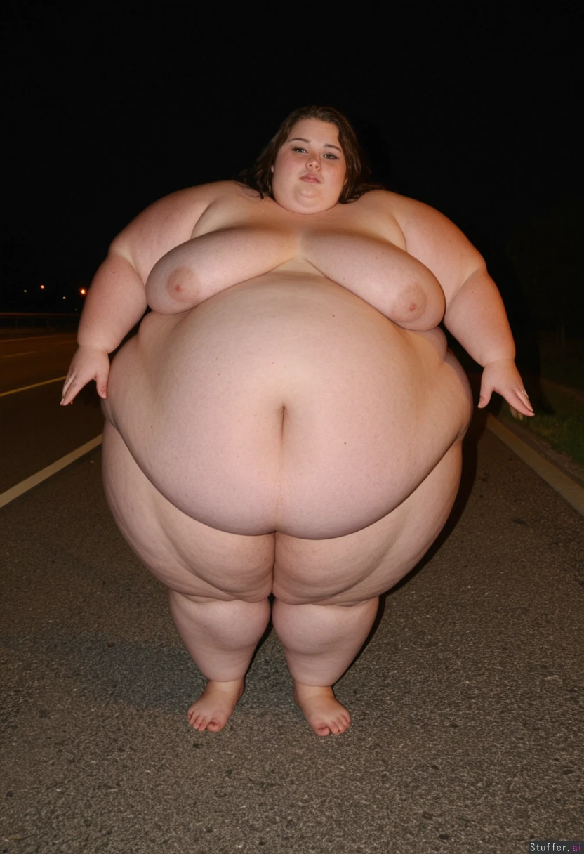 extremely beautiful 18 year old hyper obese blob woman nude on the side of a highway at night