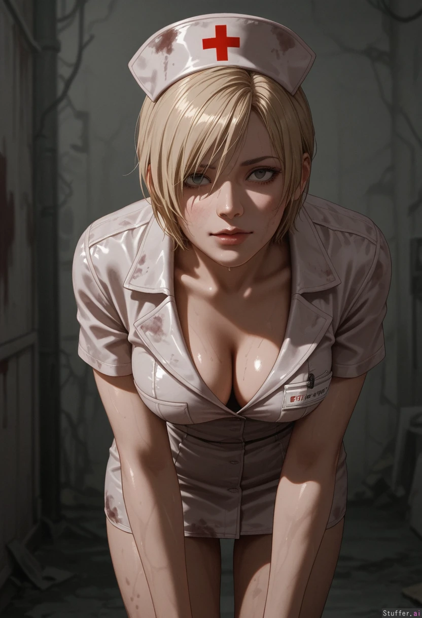 Silent hill, solo, bubble_head_nurse_(silent_hill), dirty clothing, slimy, wet, hunched over