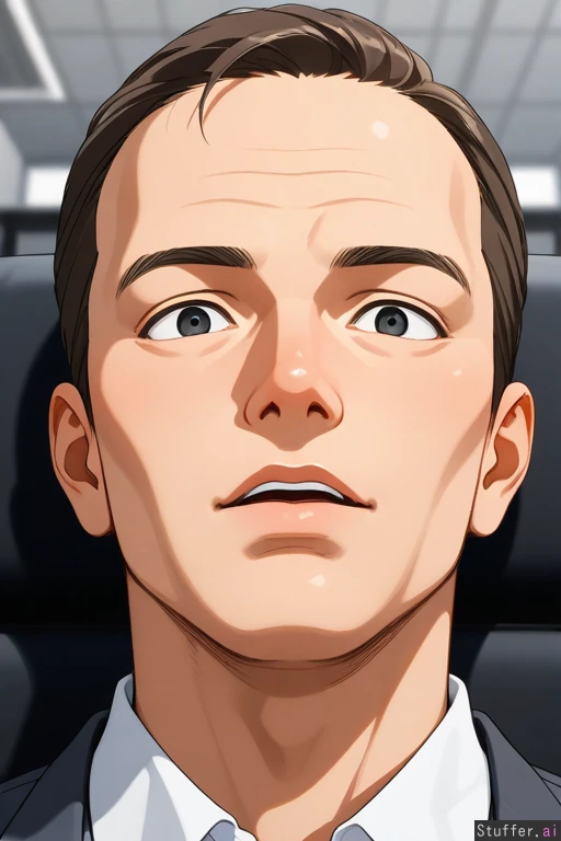 image of a older man with a surprised look on his face sitting in a office chair in a office room