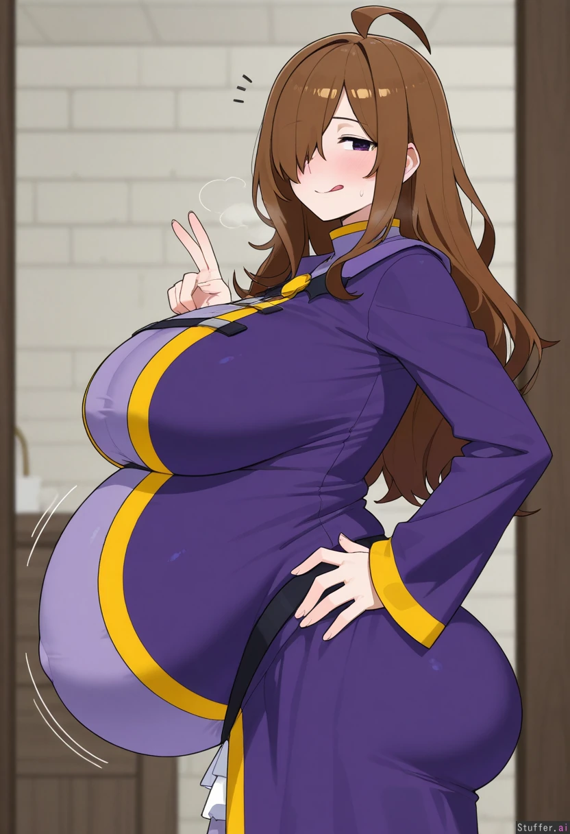 uhd, high resolution, flawless, best_quality, (hdr), (lineless:1.4), perfect anatomy, beautiful face, beautiful eyes, Tweedabop(artist), (ohasi_art), (betterwithsalt), w-oo-t(artist),(perfect hands). Solo. (eyes half open), (licking lips), ( hands on hips),(heavy breathing),(horny expression), naughty face, ((hyper belly:1.2)), (big ass), side view, ((wiz, konosuba)), Big breasts.