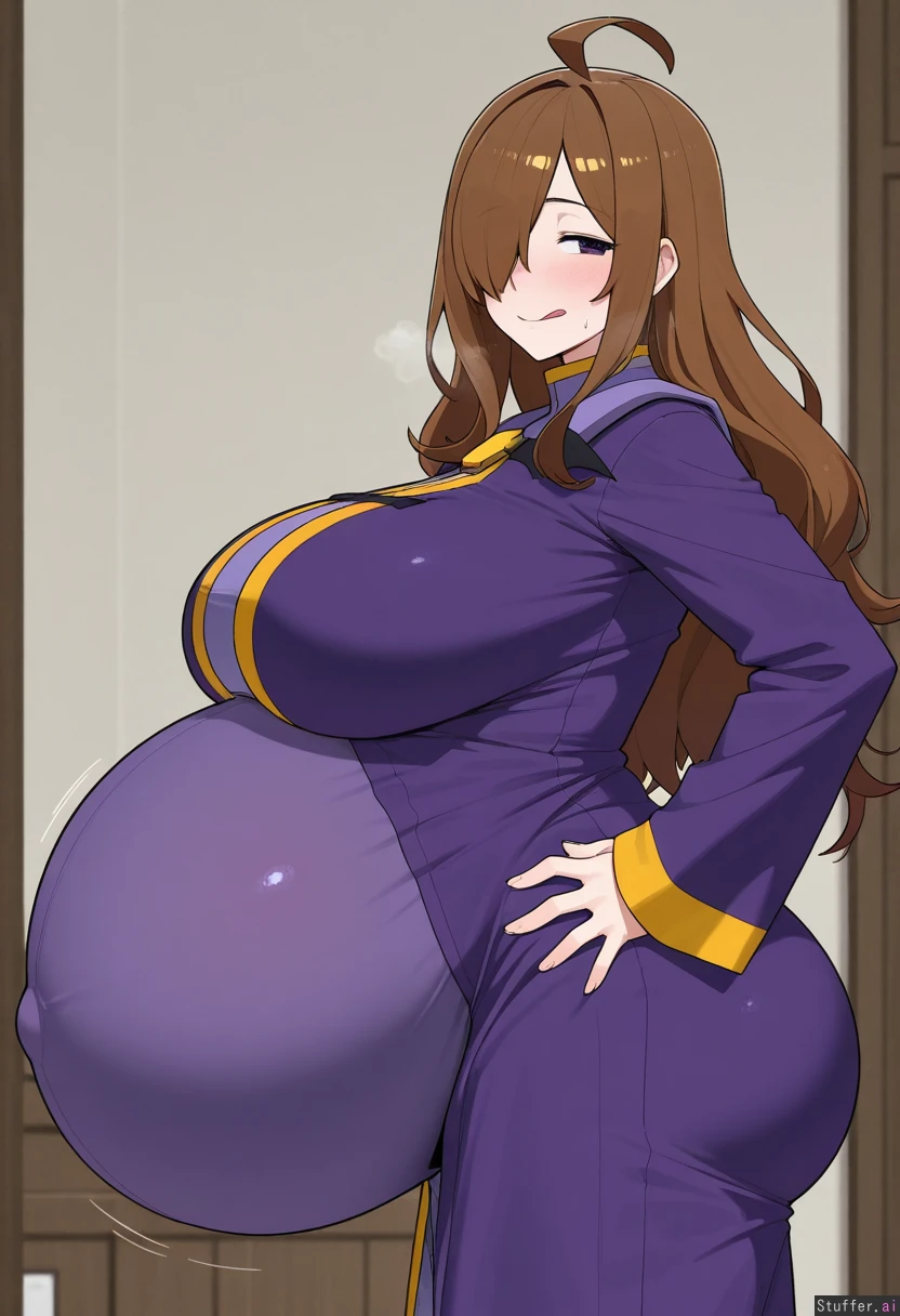 uhd, high resolution, flawless, best_quality, (hdr), (lineless:1.4), perfect anatomy, beautiful face, beautiful eyes, Tweedabop(artist), (ohasi_art), (betterwithsalt), w-oo-t(artist),(perfect hands). Solo. (eyes half open), (licking lips), ( hands on hips),(heavy breathing),(horny expression), naughty face, ((hyper belly:1.5)), (big ass), side view, ((wiz, konosuba)), Big breasts.