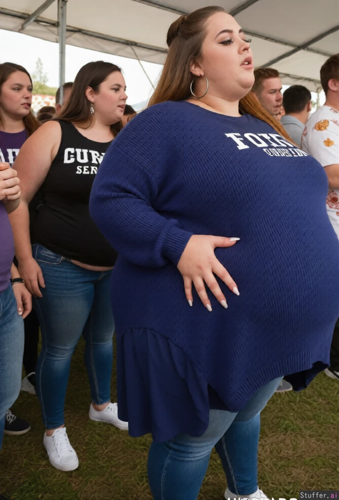 Make her wear an ultra bloated, flowy, adipose and fat-bellied sweater that covers her belly and is slightly flowy at the hem.