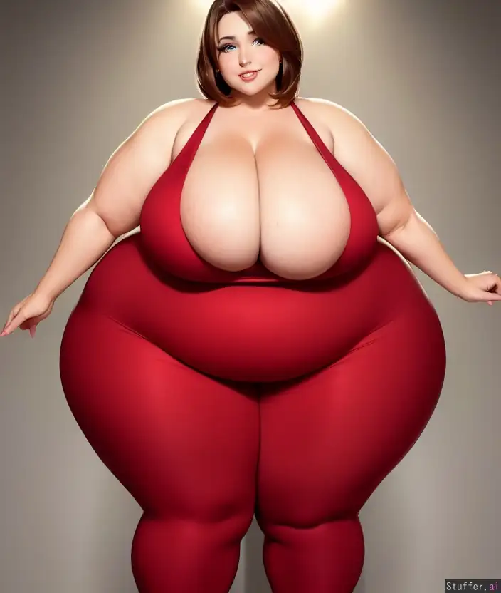 High quality, perfect anatomy, curvy bbw woman, (short brown hair with side part), ((gorgeous eyes))((gorgeous hair))((gorgeous face))((extremely bottom heavy)), (((enormous hips))), (((gigantic thighs))), (sweet smile), feminine, modest, (((red dress)), highly detailed face, sensual look, (love handles), (narrow waist) (((office))) ((emphasis on her hyper gigantic hips:1.2))