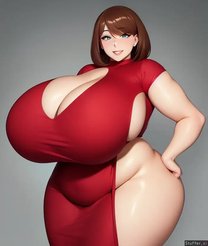 High quality, perfect anatomy, professionally dressed, BBW, 30 years old, (short brown hair with side part), ((gorgeous eyes))((gorgeous hair))((gorgeous face))((extremely heavy hips)), (((hyper gigantic hips))), (((hyper gigantic thighs))), (sweet smile), feminine, modest, (((tight red dress)), highly detailed face, sensual look, (love handles), (narrow waist)(((office))) ((emphasis on her hyper gigantic hips:1.2))