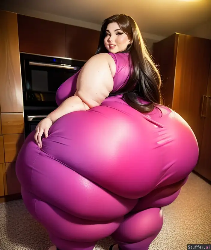 High quality, proudly showing (((((Gigantic massive and wide ass))))), ((((massive hips)))), ((thick thighs)), young ssbbw mom, long hair, ((pretty face, realistic face)), seductive smile, kitchen, (tight pants)